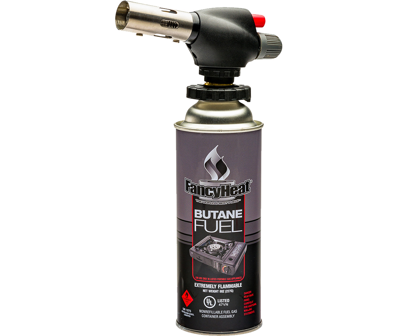 For use with 8oz. Butane Fuel Cartridge High performance flame Push button automatic ignition Equipped with anti-flare devise Burns up to 3 hours per 8oz. can Case Pack: 10